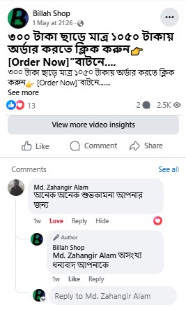 ✅Billah Shop সেরা পণ্য, সেরা দাম, সেরা ডেলিভারি! 🏆✨ জরুরী প্রয়োজনে অথবা অর্ডার করতে কল অথবা হোয়াটসঅ্যাপ করুন 01911283325 নম্বরে। Delivery Time 48/72 hours.